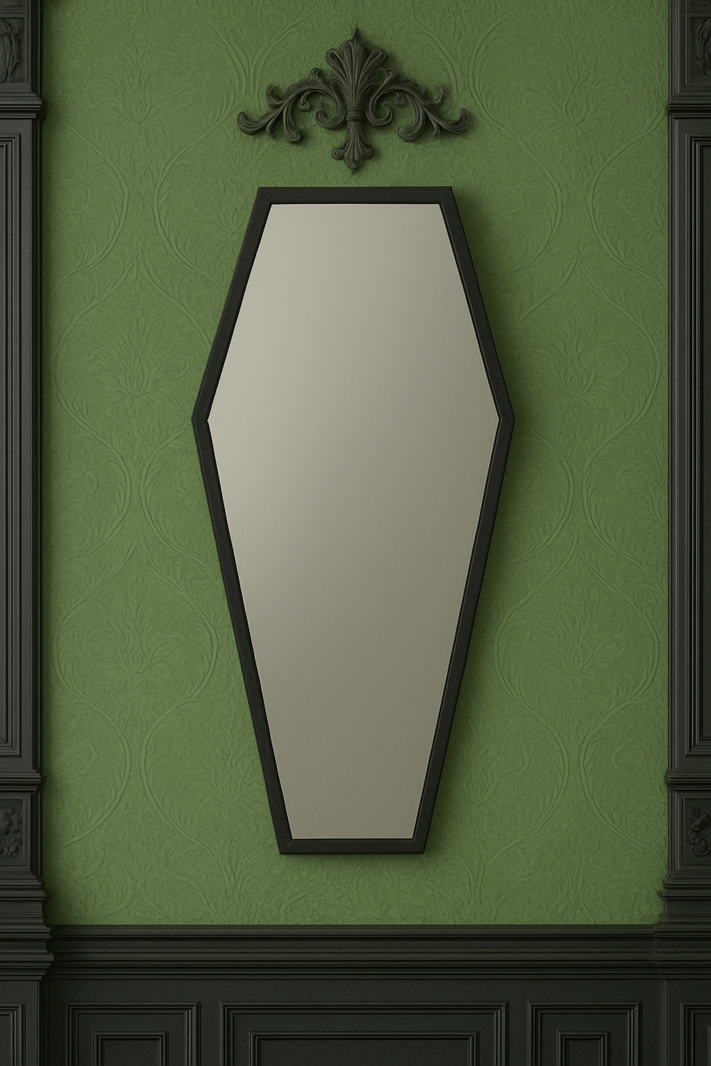 Add some gothic flair to the home or garden with this unique, coffin-shaped mirror. Suitable to be used indoors and out, this piece is sure to make a dark statement. Keep out of harsh weather.