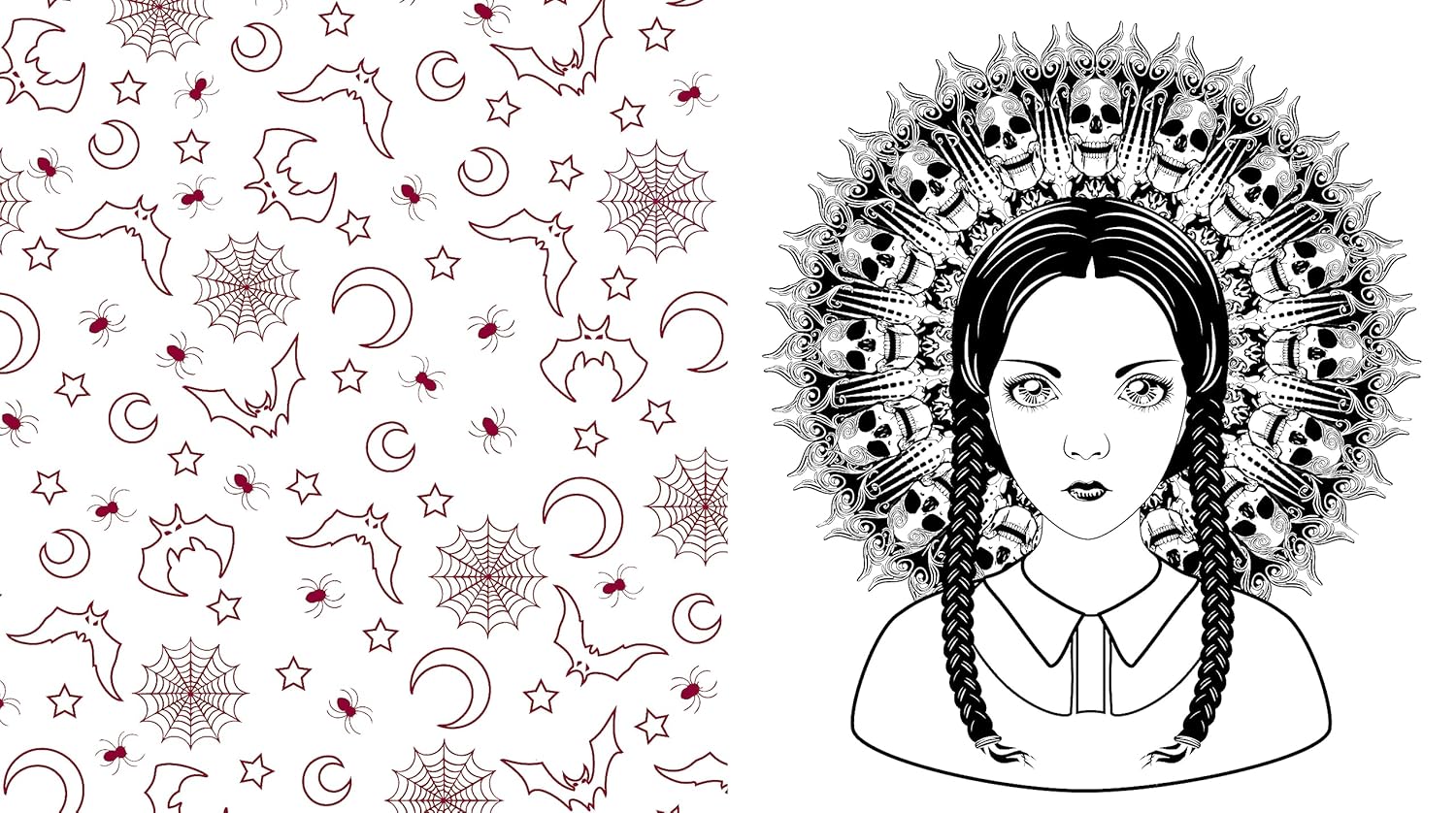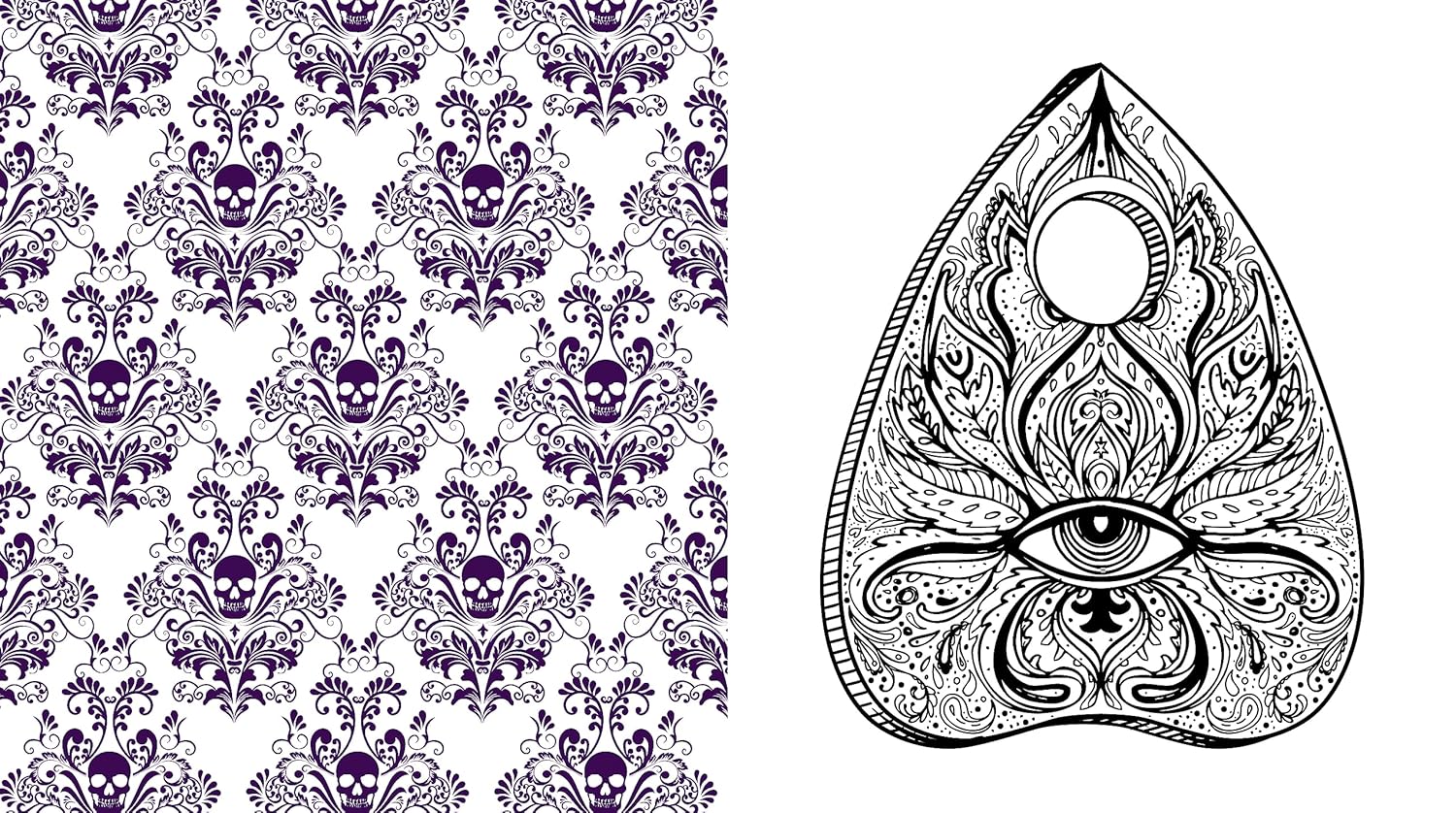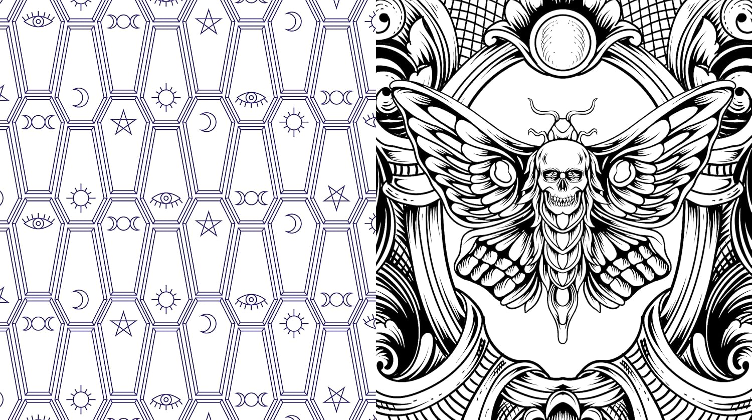 Unwind and relax with these coloring pages. Use markers, gel pens, or colored pencils to make these detailed illustrations and gothic patterns your own. Black, purple, and red are often used in the gothic aesthetic but feel free to use any colors you wish.