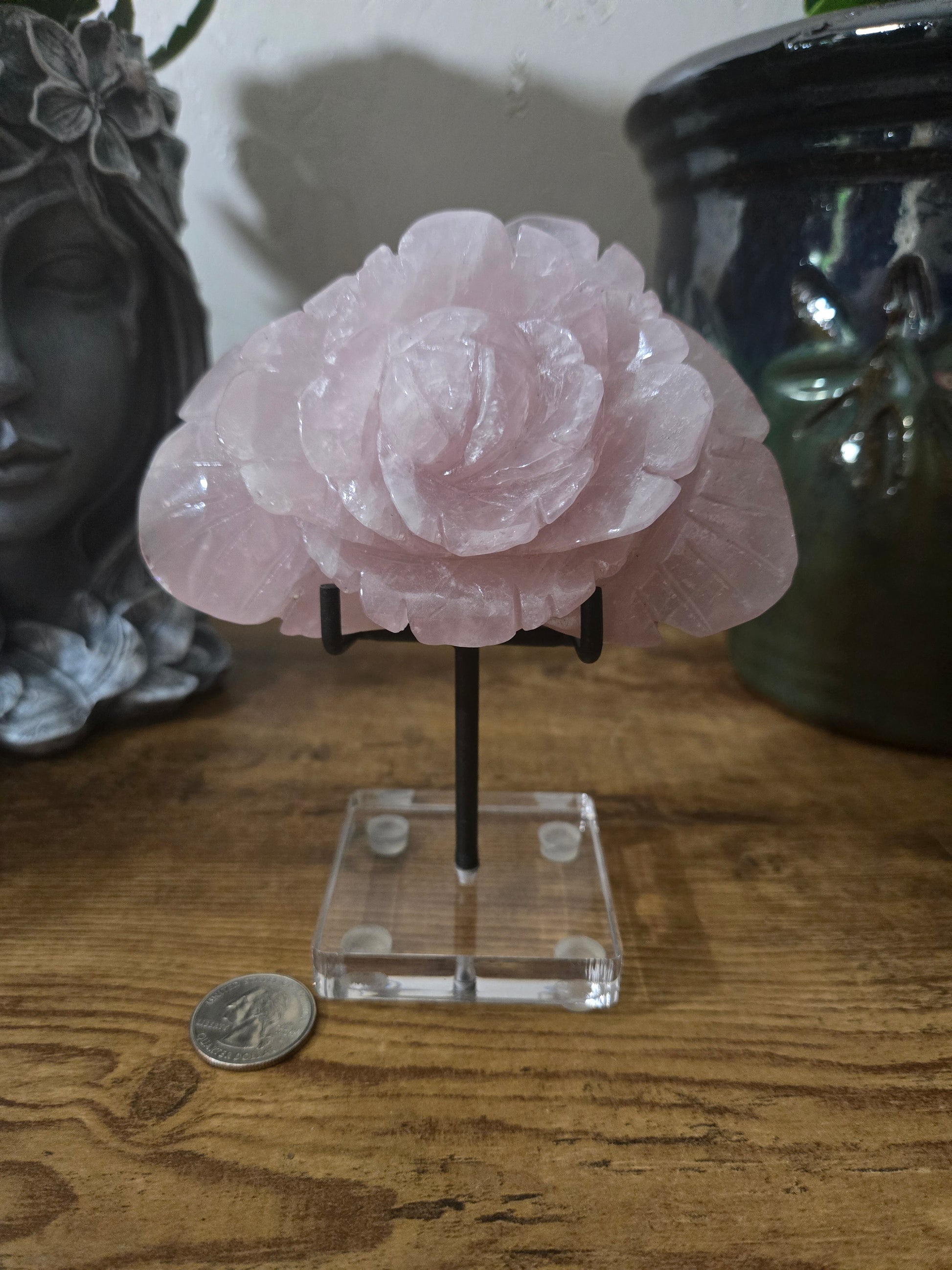 Rose Quartz Rose Carving