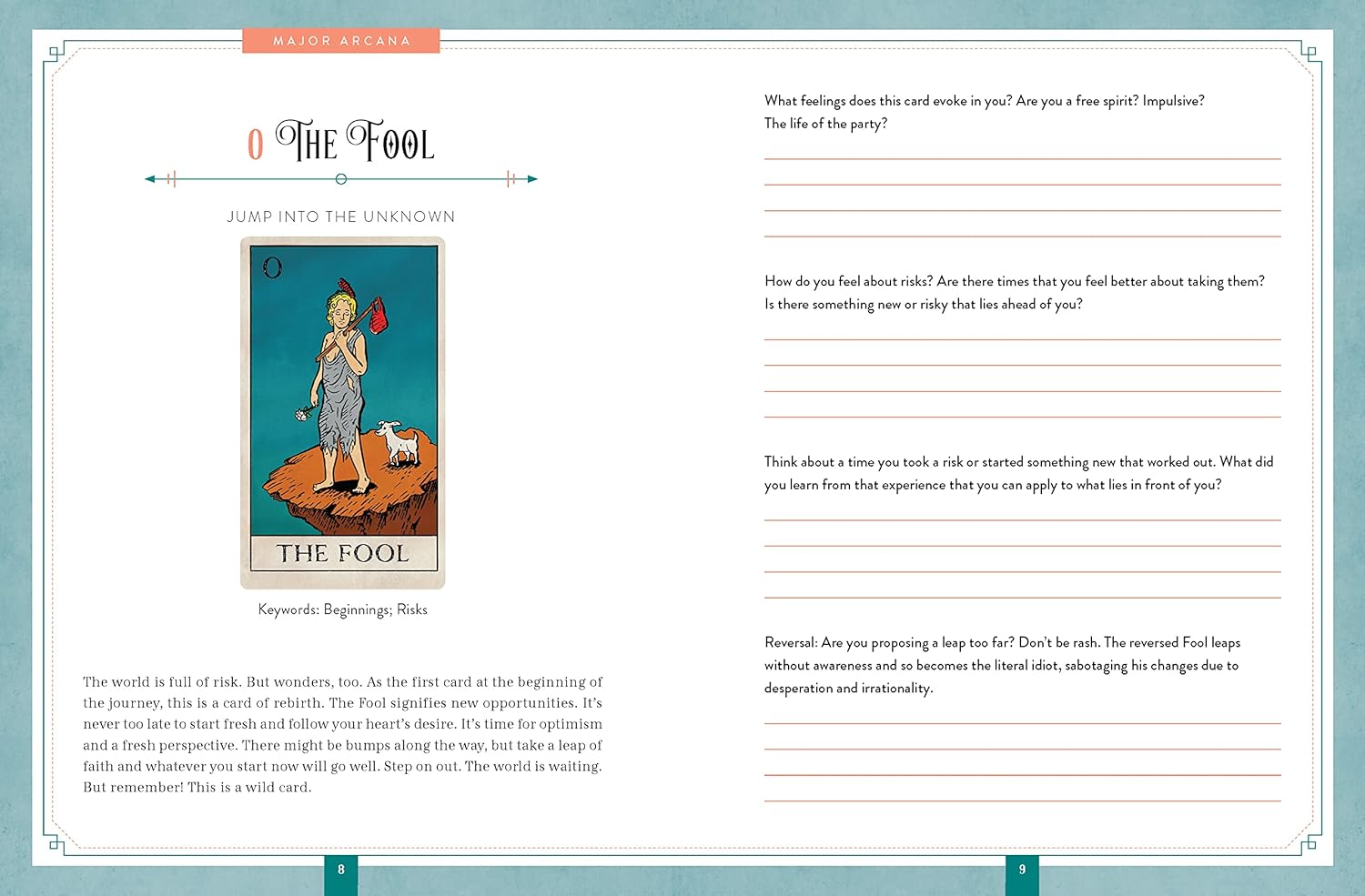 Start your tarot journey today with A Guided Workbook . The art of reading tarot cards draws on your innate ability to make connections, recognize yourself in the stories around you, and reinterpret signs with meaning. You can use it to uncover fascinating insights into your soul , love life , relationships , finances and career , as well as your potential . This tarot guide gives you the information you need to decode each one of the cards in the tarot deck along with writing prompts to help you tune in to your intuition whenever you need a little guidance. Think about the card and follow the prompts to discover more about yourself, understand the lessons in your experiences, and move forward.