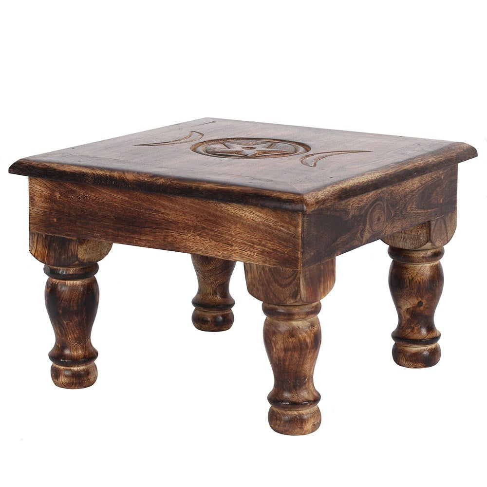 Made from mangowood, this beautifully finished Large altar table features a triple moon design.
